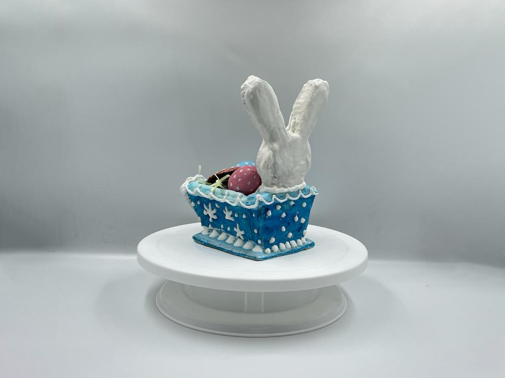 Το Gingerbread Easter Bunny αποτελείται από βρώσιμη, φτιαγμένη από υλικά δικής μας παραγωγής, τζιντζερομπισκοτένια ζύμη αρωματισμένη με ginger, κακάο και βανίλια, δίνοντας μια πασχαλινή ατμόσφαιρα στο περιβάλλον σας.