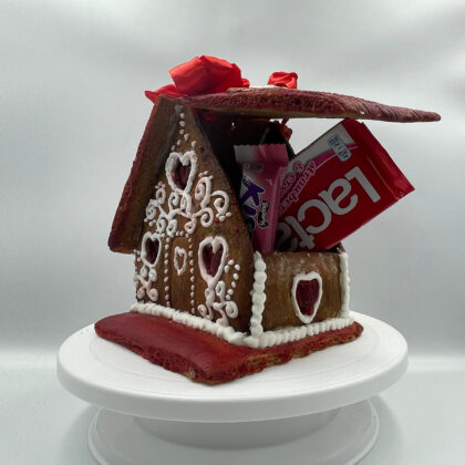 Το gingerbread Valentine’s Box αποτελείται αποκλειστικά από βρώσιμη, φτιαγμένη από υλικά δικής μας παραγωγής, τζιντζερομπισκοτένια ζύμη αρωματισμένη με ginger, κακάο και βανίλια, δίνοντας μια γλυκιά νότα αγάπης στο περιβάλλον του αγαπημένου σας ανθρώπου.