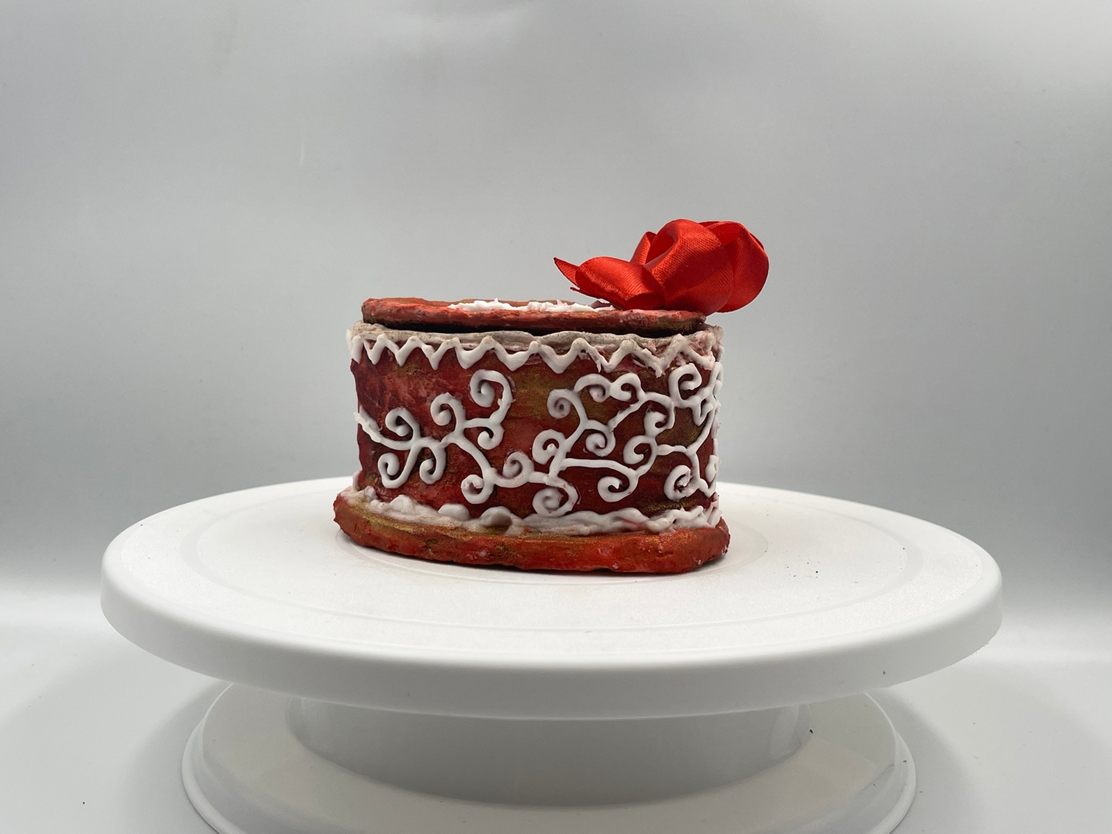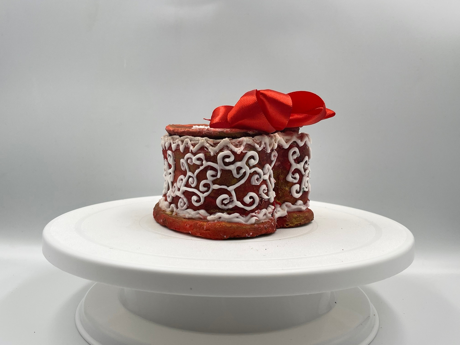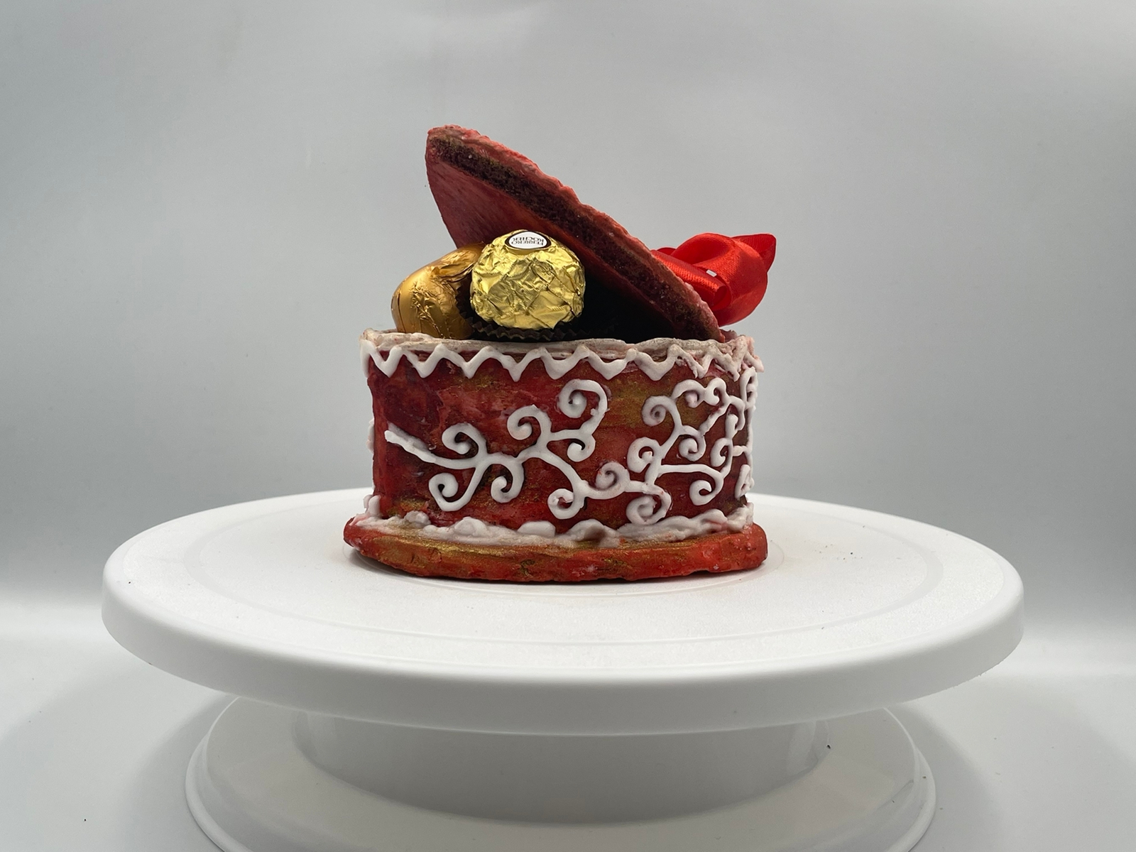 - μπισκοτένιο κόκκινο κουτί σε σχήμα καρδιάς ζωγραφισμένο όλο με γλάσο