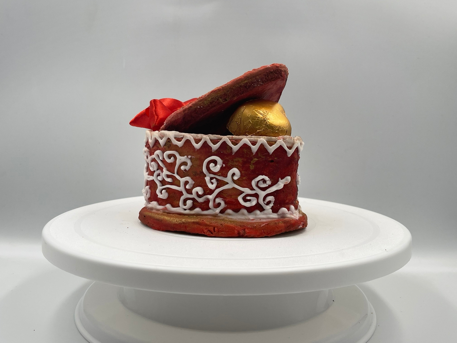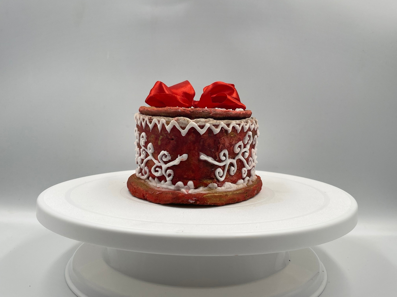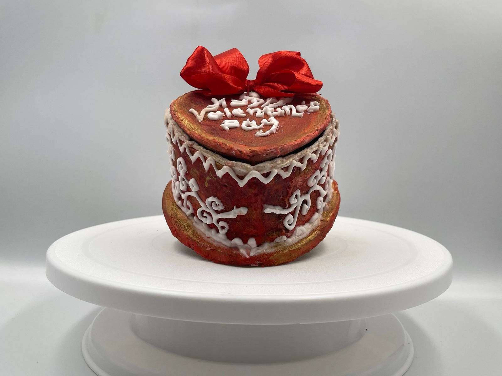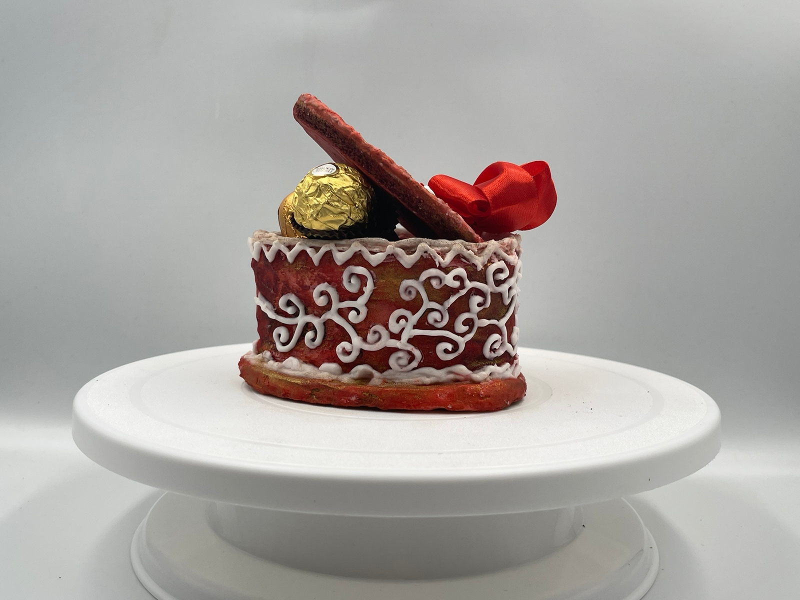 - μπισκοτένιο κόκκινο κουτί σε σχήμα καρδιάς ζωγραφισμένο όλο με γλάσο
